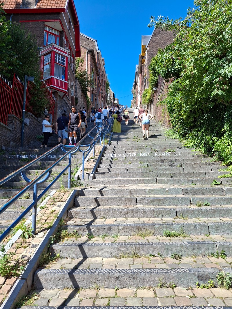 Ontdek de leuke shopjes, drukke terrasjes, historische gebouwen en 1 ding wat op je lijstje staat aan je bezoek aan Luik: klim mee de 374 trappen op van de Montagne de Bueren. Het is een goede work-out. Het is een typisch kunstwerk van doorsteken uit de 19e eeuw. Een rechtstreekse doorsteek is toen ontstaan tussen de kazerne van de citadel naar het stadscentrum. Bovenaan geniet je van de rust en het is een prachtig uitkijkpunt over de stad Luik. En hoe verder je de stad induikt, hoe meer leuke plekjes je ontdekt. Grappig dat er huizen gevestigd zijn aan beide zijden van de trappen. Bovenaan kom je uit bij het citadel.